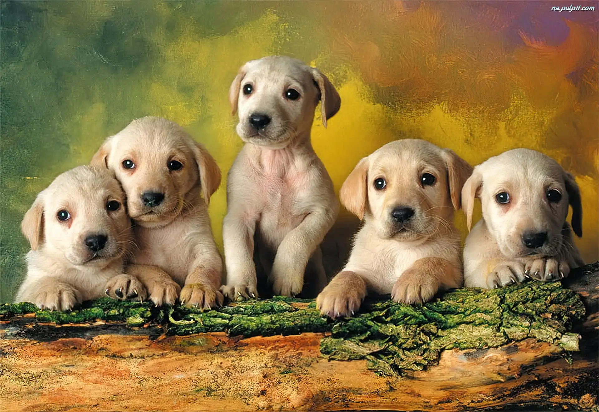 Drzewo, Małych, Pięć, Labradorów Na Pulpit
