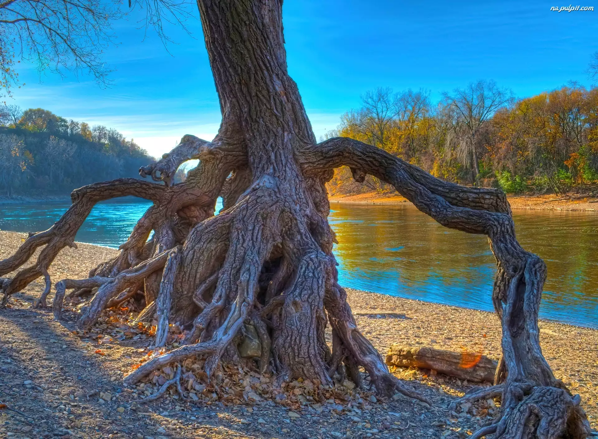 Rzeka, Drzewo, Korzenie Na Pulpit