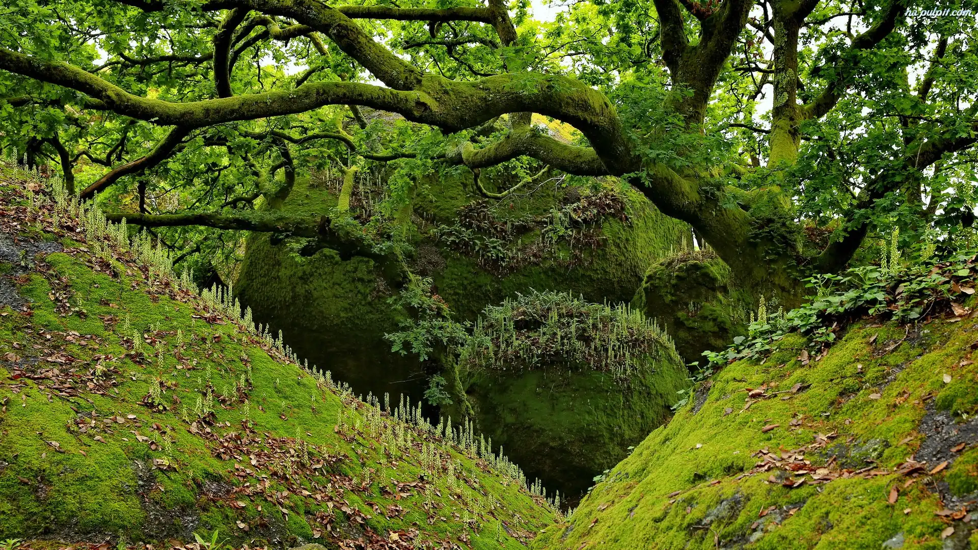 Drzewo, Liście, Skarpa, Omszone Na Pulpit