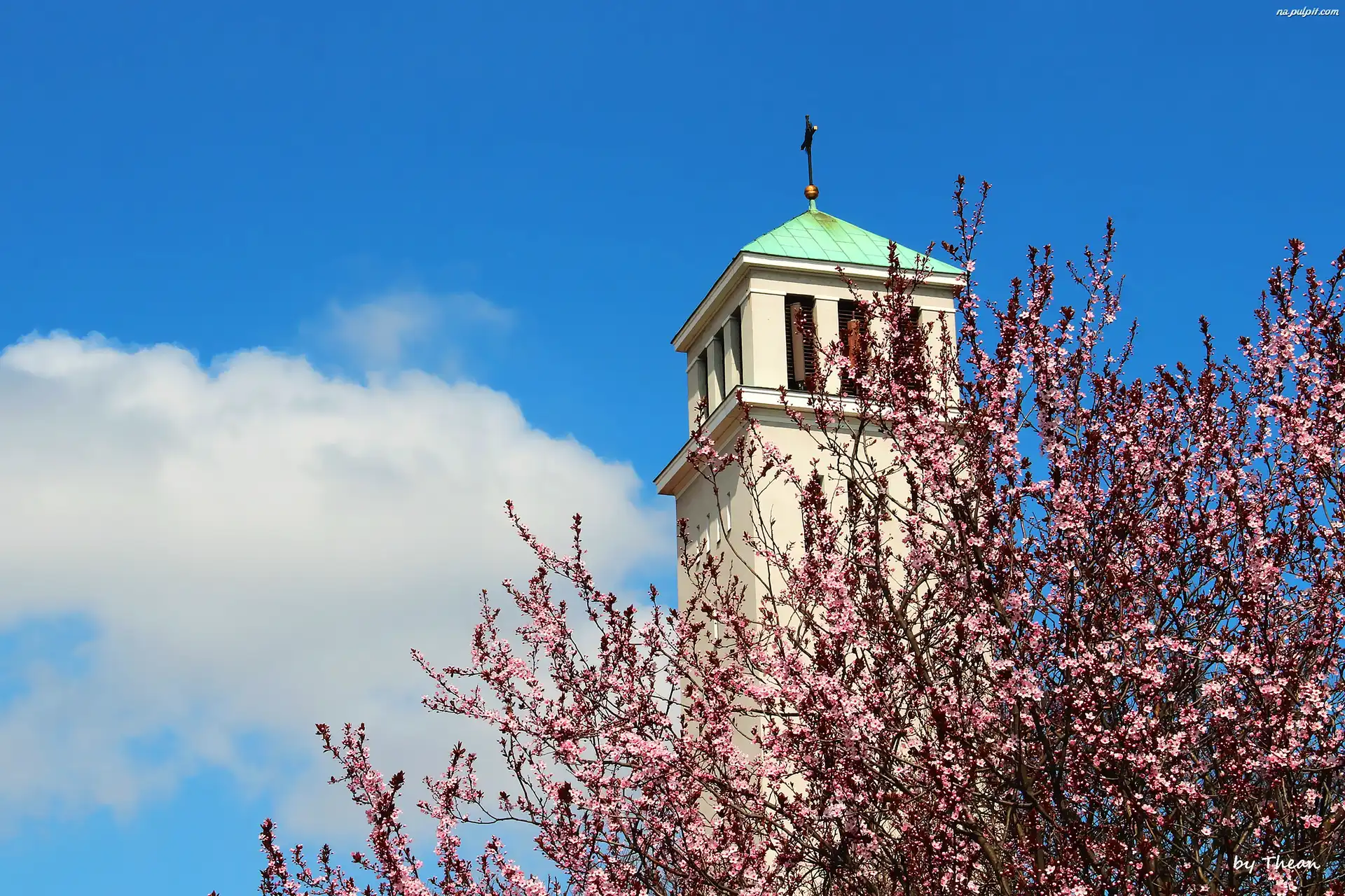 Drzewo, Kościoła, Wieża, Kwitnące