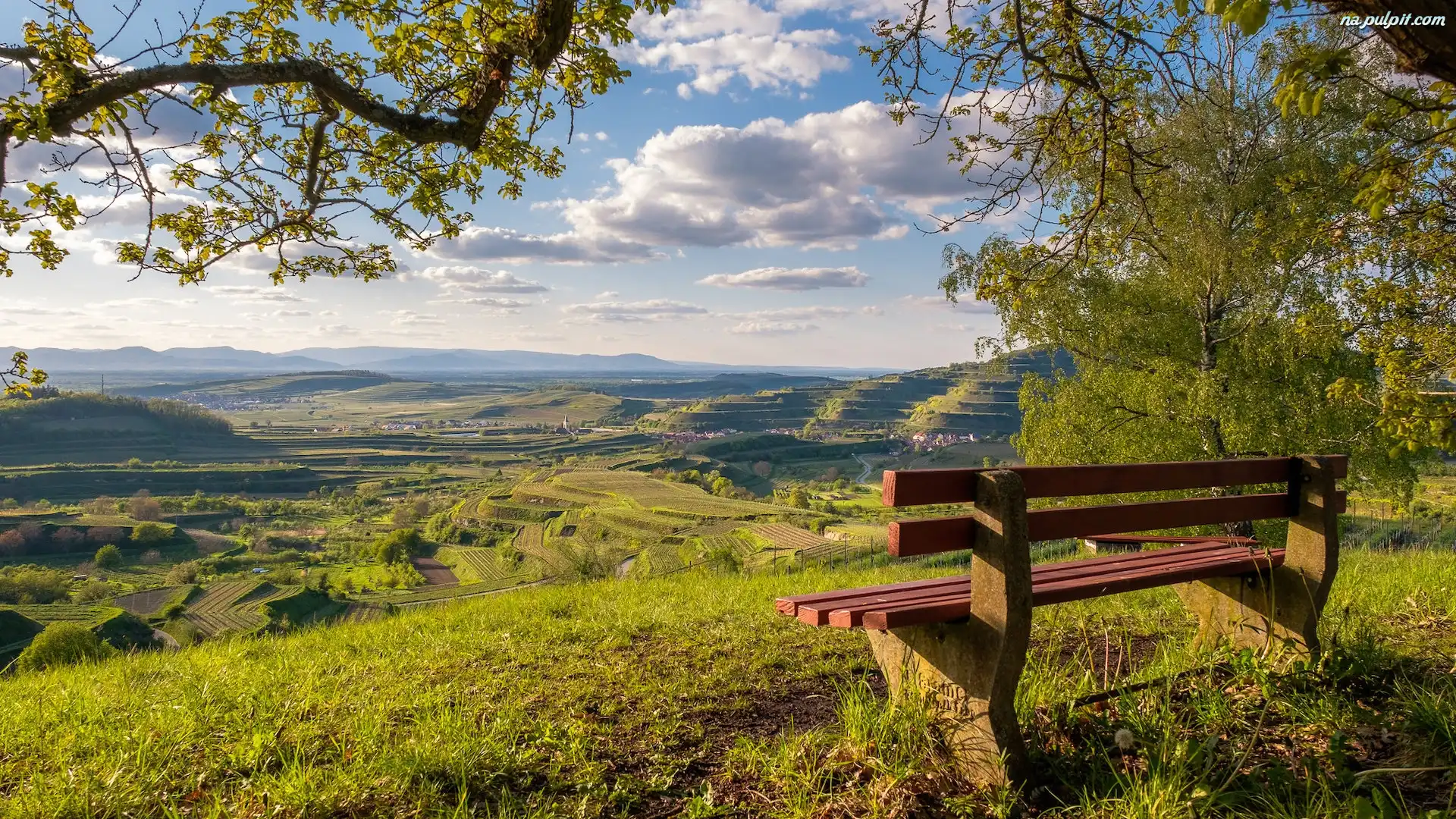 Kaiserstuhl, Drzewo, Ławka, Vogtsburg, Niemcy, Pola, Łąka, Winnice Na Pulpit