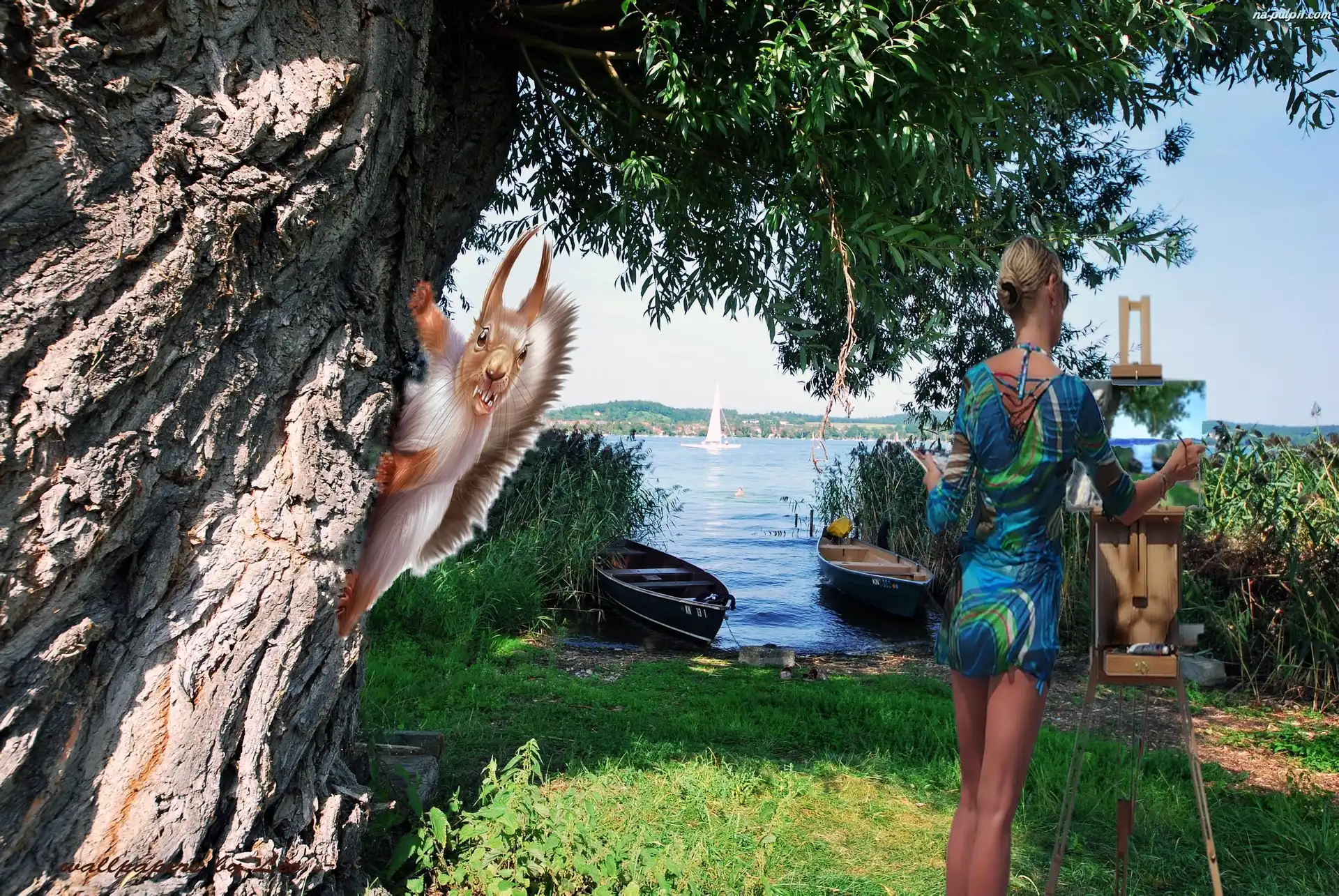, Manhattan, Nowego Jorku, Dzielnica, Drapacze Kwiaty, Góry, Rzeka Skok, Ryby, Akwarium Model, Bentley Continental, Flagowy Lotos, Li¶cie, Kwiat Zabytkowy, Corvette, Chevrolet, Kobieta, Corvair Pola, Pastwisko, Ogrodzenie Mniszek, Jarzêbina, ¦wierk, Ga³±zka, Koniczyna