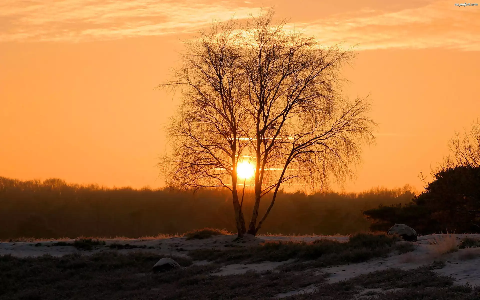 Śnieg, Zachód, Drzewo, Słońca Na Pulpit