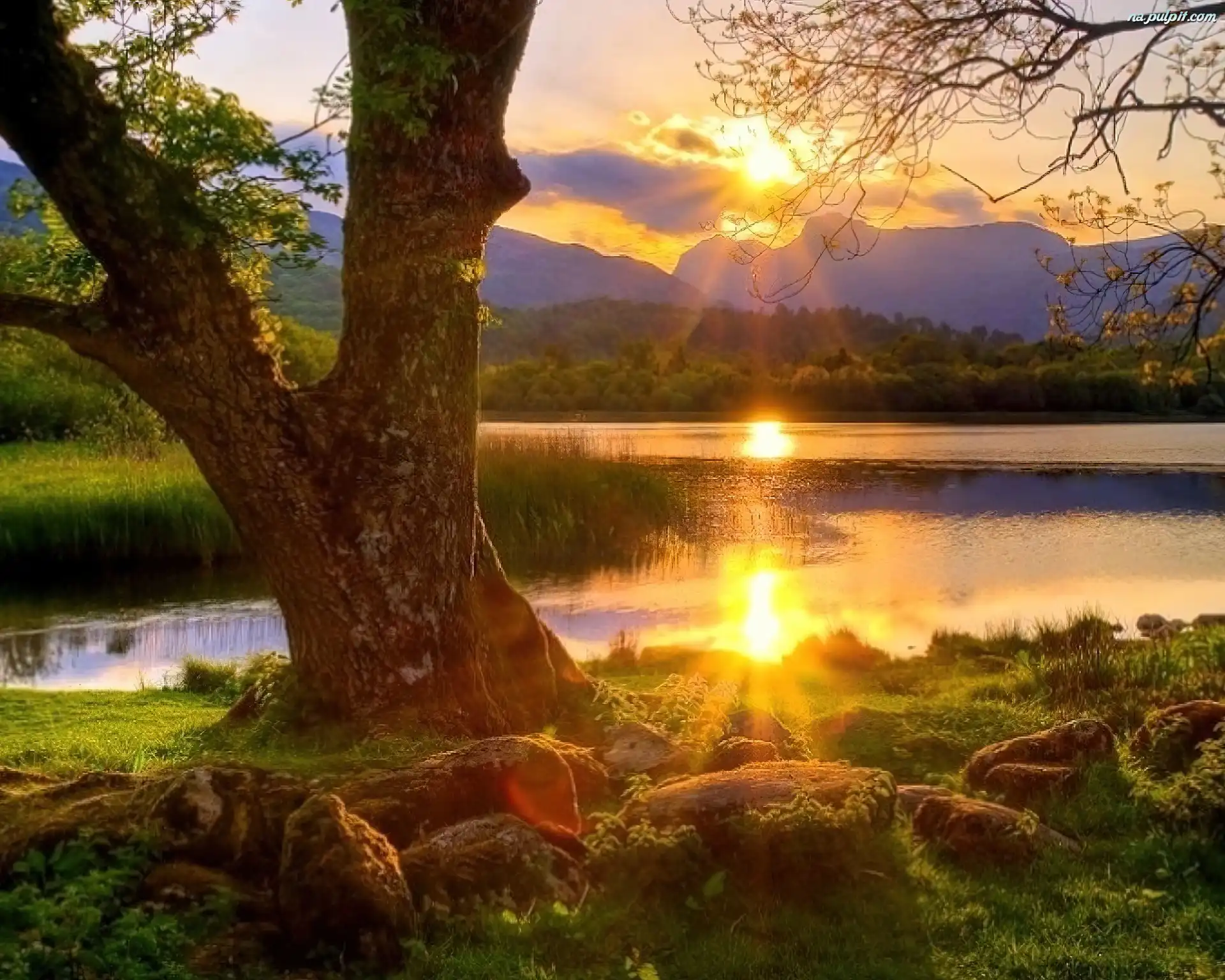 Drzewo, Słońca, Zachód, Jezioro Na Pulpit
