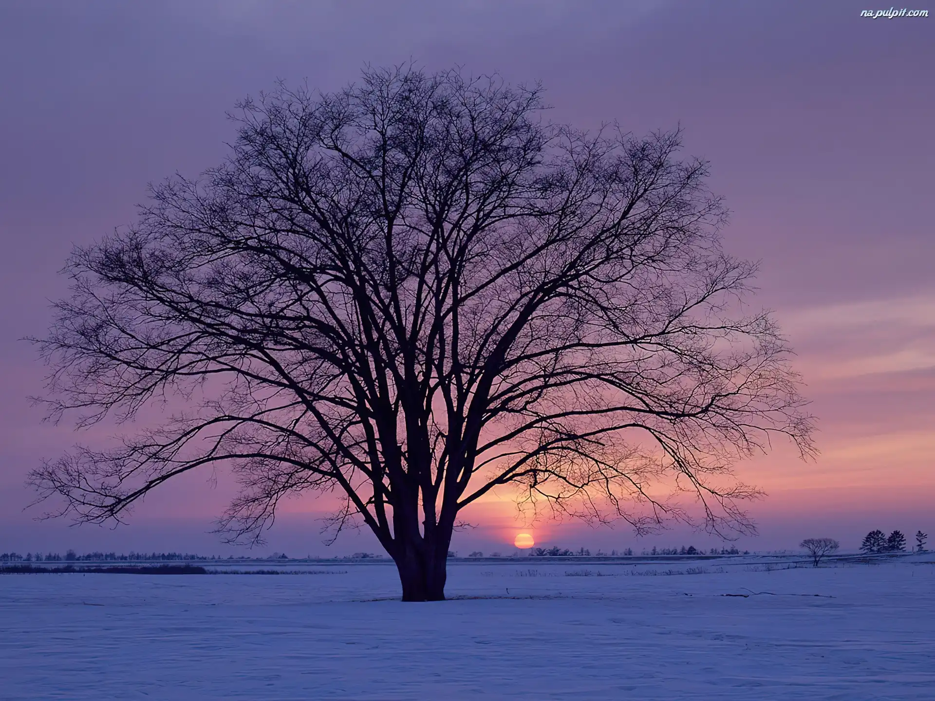 Drzewo, Słońce, Zachodzące, Samotne Na Pulpit