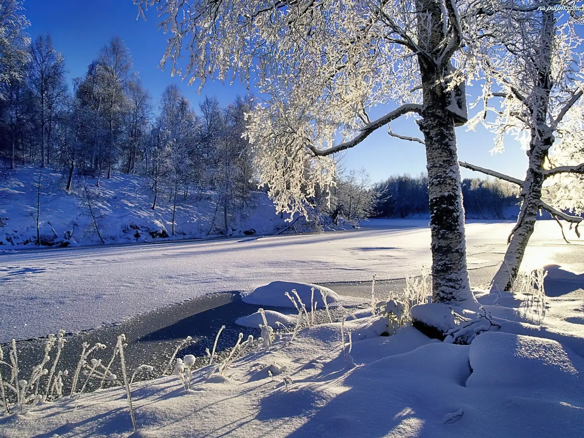 Drzewo, Rzeka, Zamarznięta, Oszronione Na Pulpit