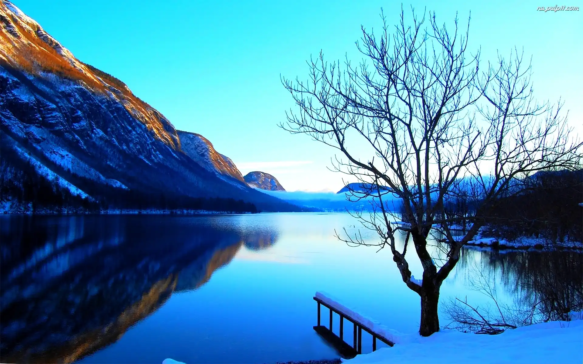 Drzewo, Góry, Zima, Jezioro Na Pulpit