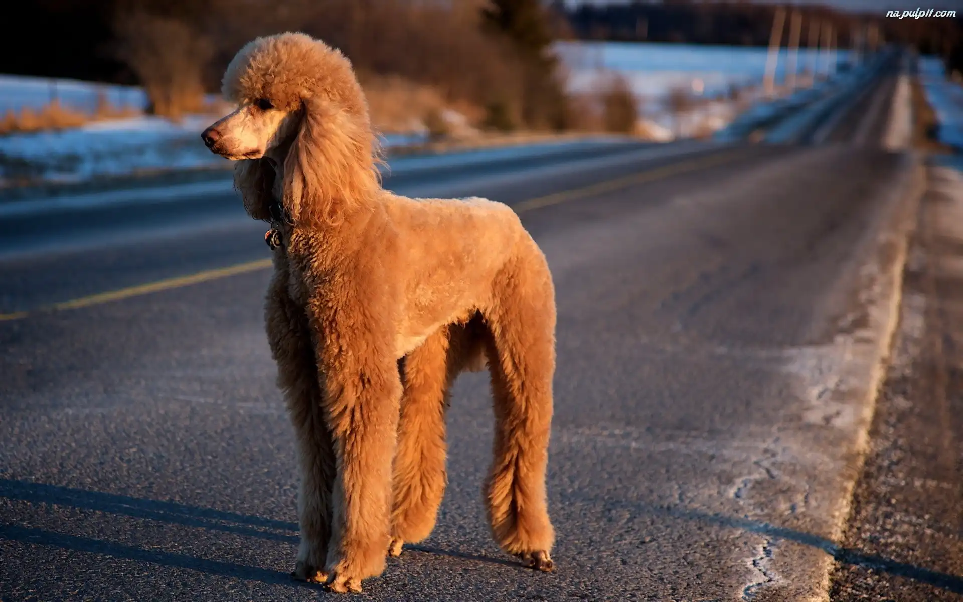 Róże, Pudel, Czerwone biały, Pudel duży Droga, Duży, Pudel