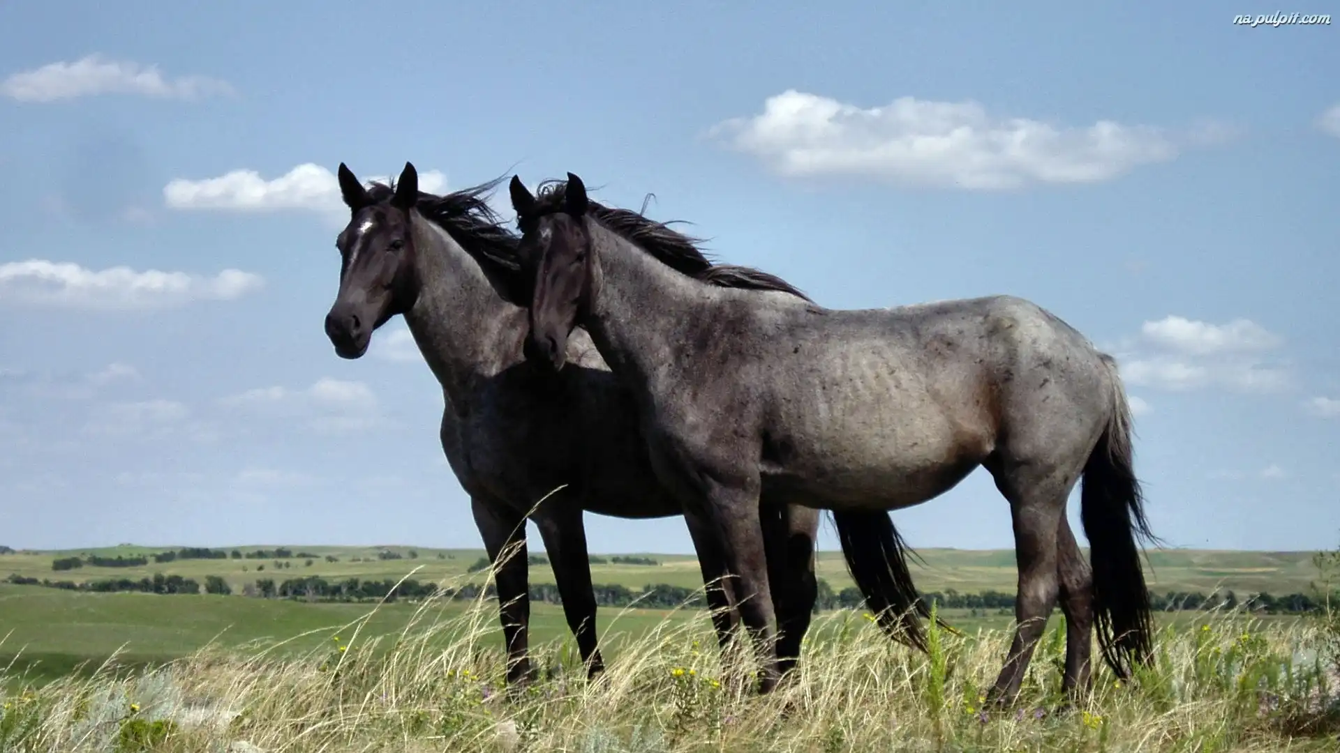 Łąka, Czarne, Dwa, Konie Na Pulpit