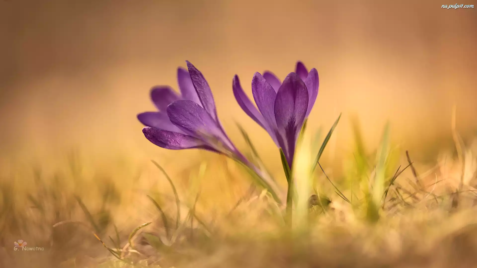 Kwiaty, Dwa, Fioletowe, Zbliżenie, Krokusy Na Pulpit