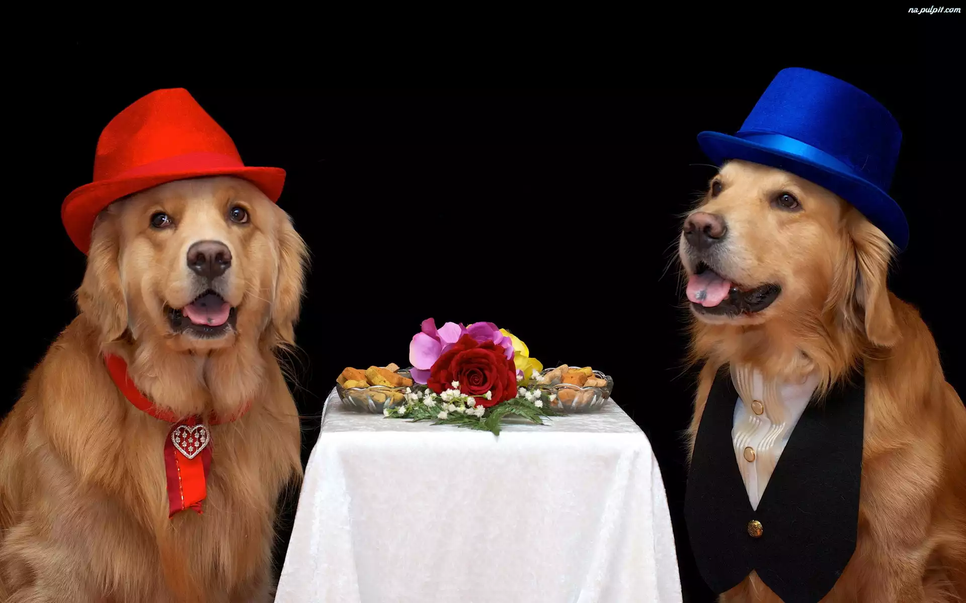 Kapelusze, Psy, Dwa, Golden retriever Na Pulpit
