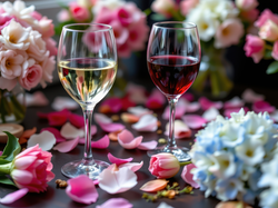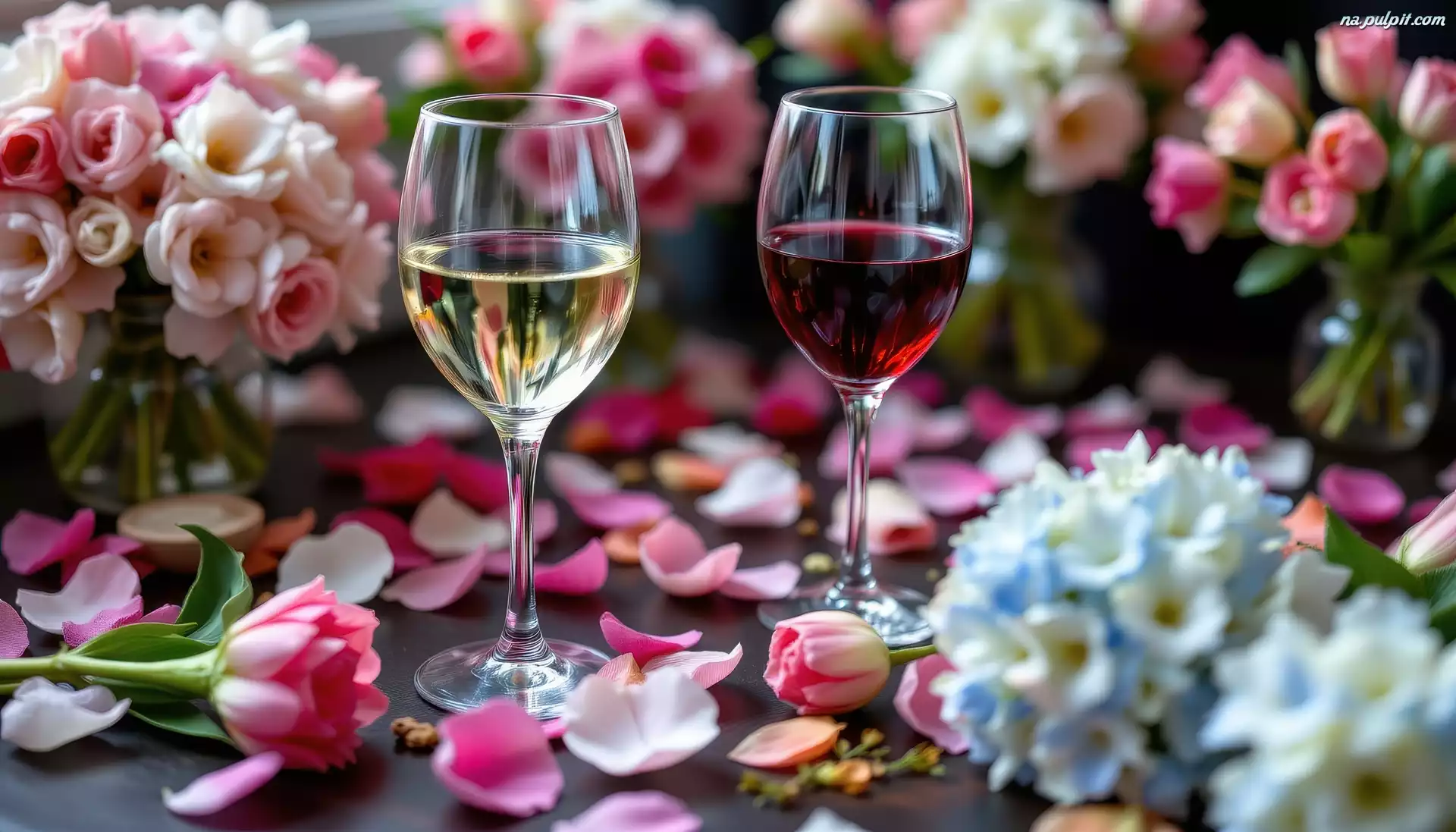 Kwiaty, Dwa, Kieliszki, Płatki, Wino Na Pulpit