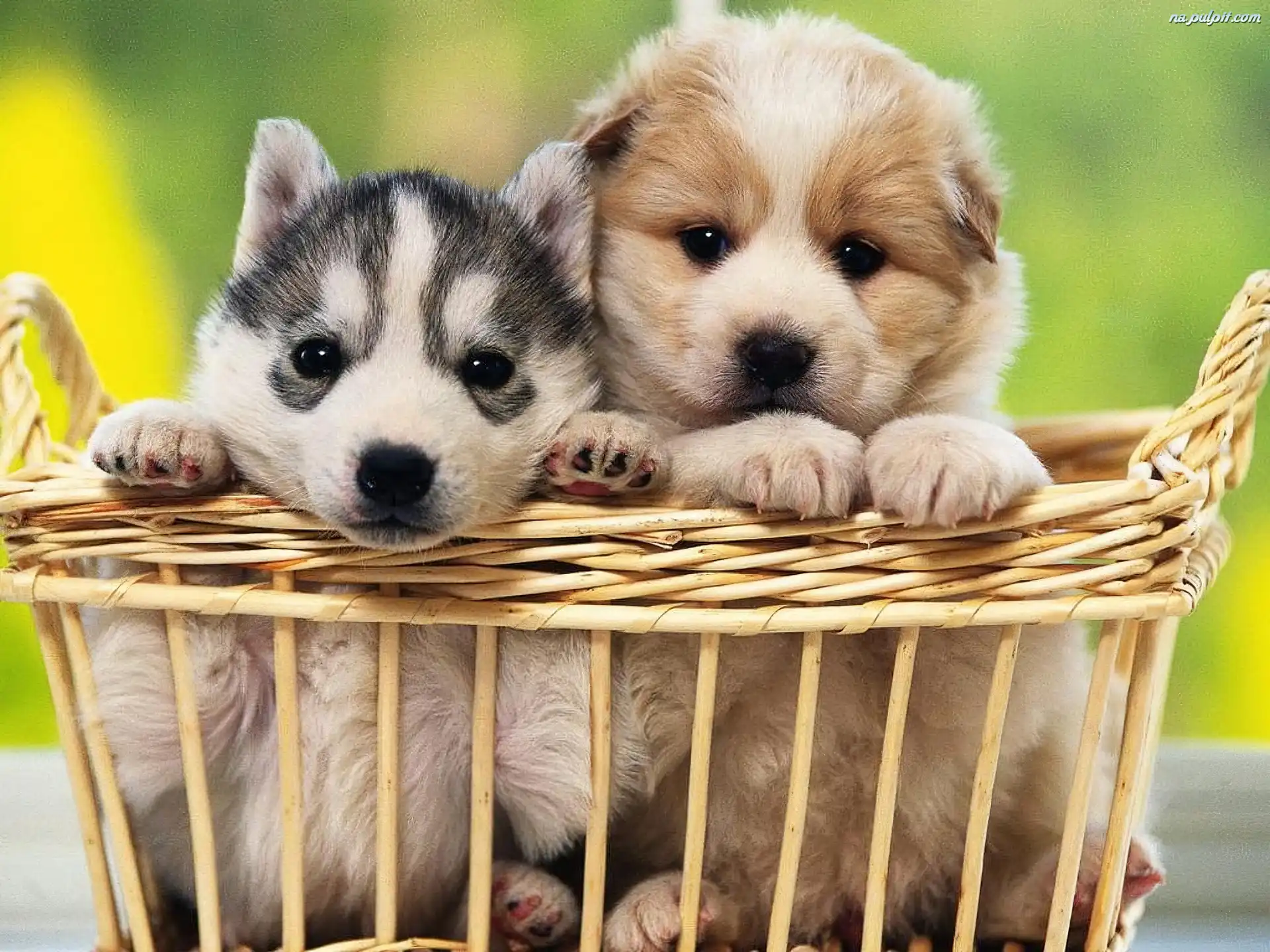 Dwa, Szczeniaczki, Koszyk, Siberian Husky Na Pulpit