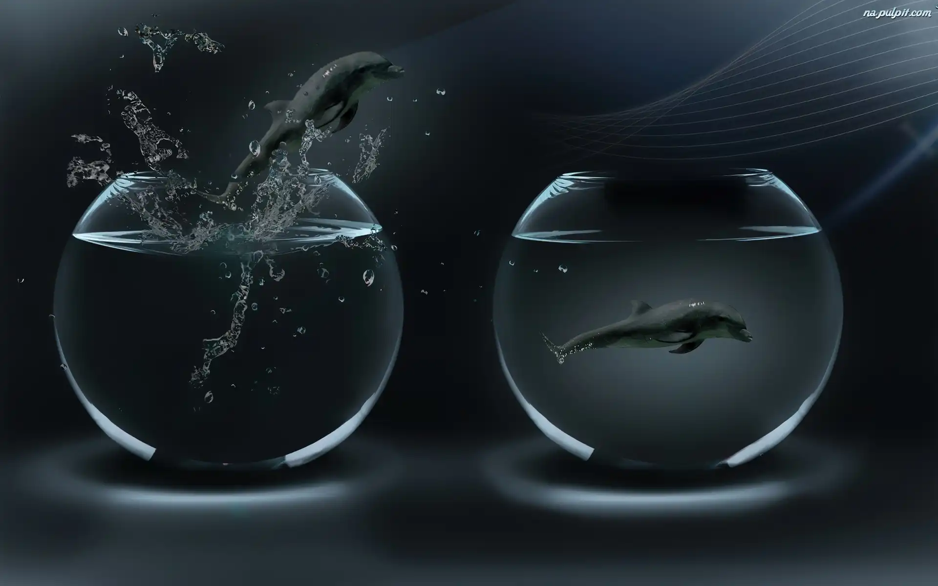 Woda, 0siem, Delfin贸w Pysk, Delfin, Z臋by Twarze, Ludzkie Delfin, Woda B膮belki, 3D Rozb艂ysk, Wiruj膮ca, Kula 3D, Ludek, Nurek Gwiazdeczki Kule, Promienie 3D, T臋cza, Delfiny, Trzy, Woda Delfiny, Palma, Ozdoba Delfiny, G艂臋biny Morskie 3D, Wektorowa Delfiny