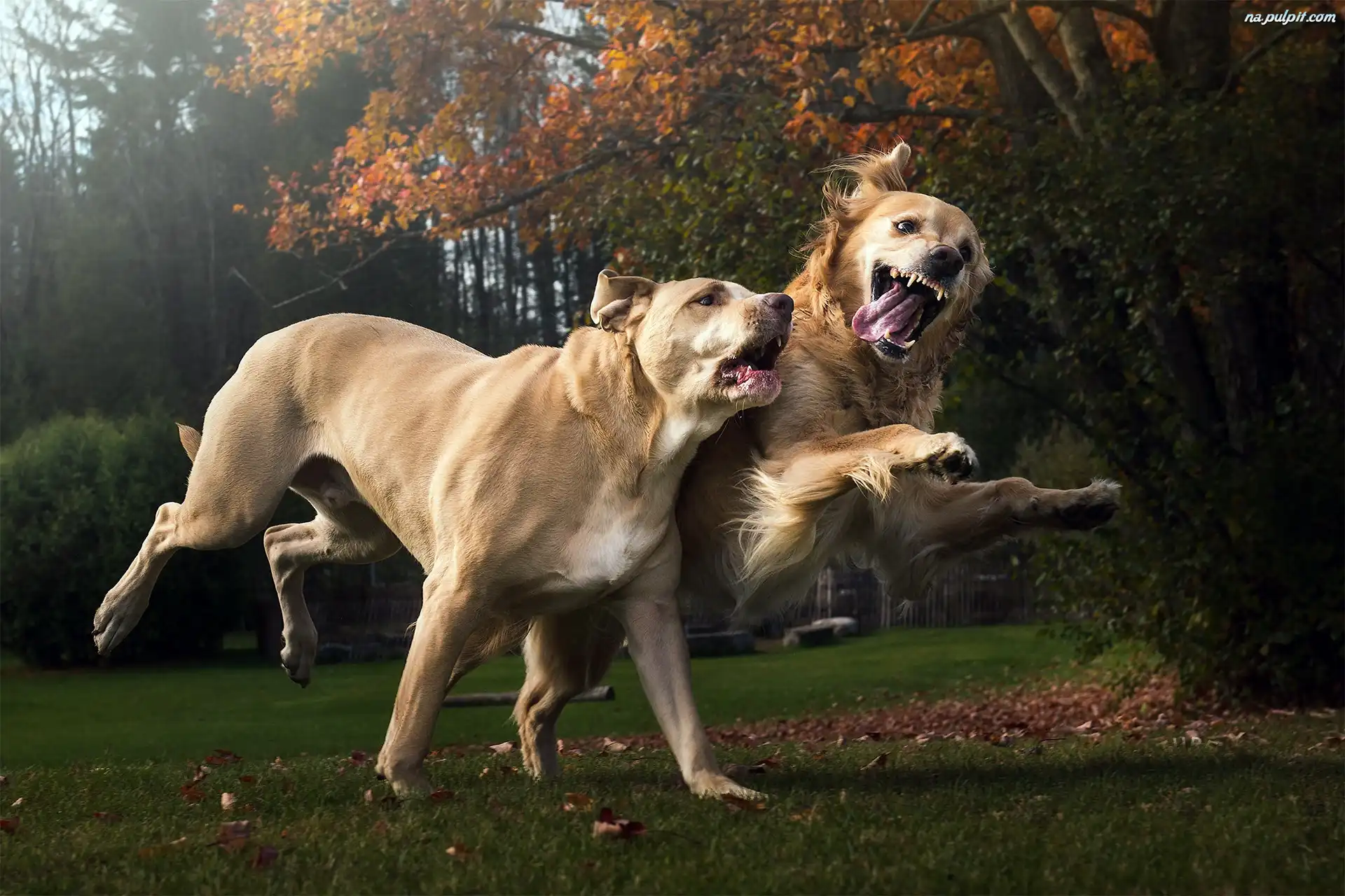 Bieg, Dwa, Psy, Jesień, Ruch Na Pulpit