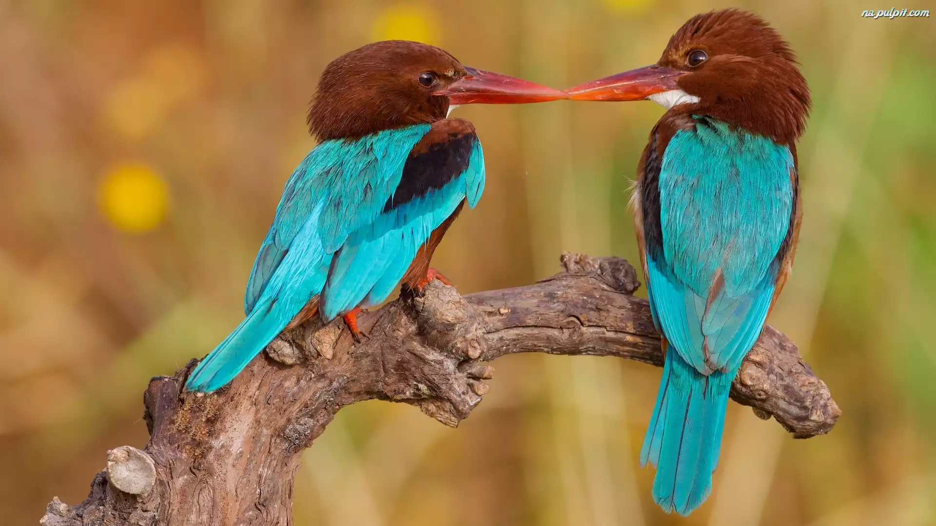 Łowce krasnodziobe, Ptaki, Dwa, Konar, Zimorodki Na Pulpit