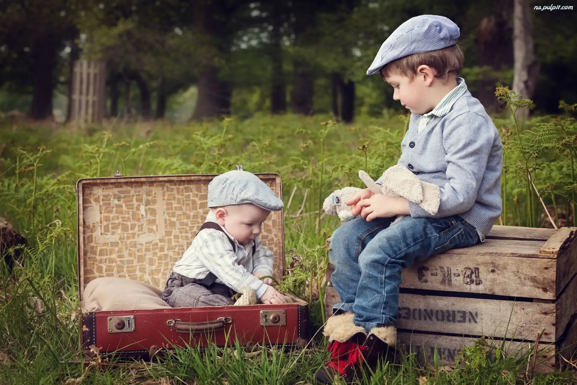 Łąka, Chłopcy, Dwaj, Walizka Na Pulpit