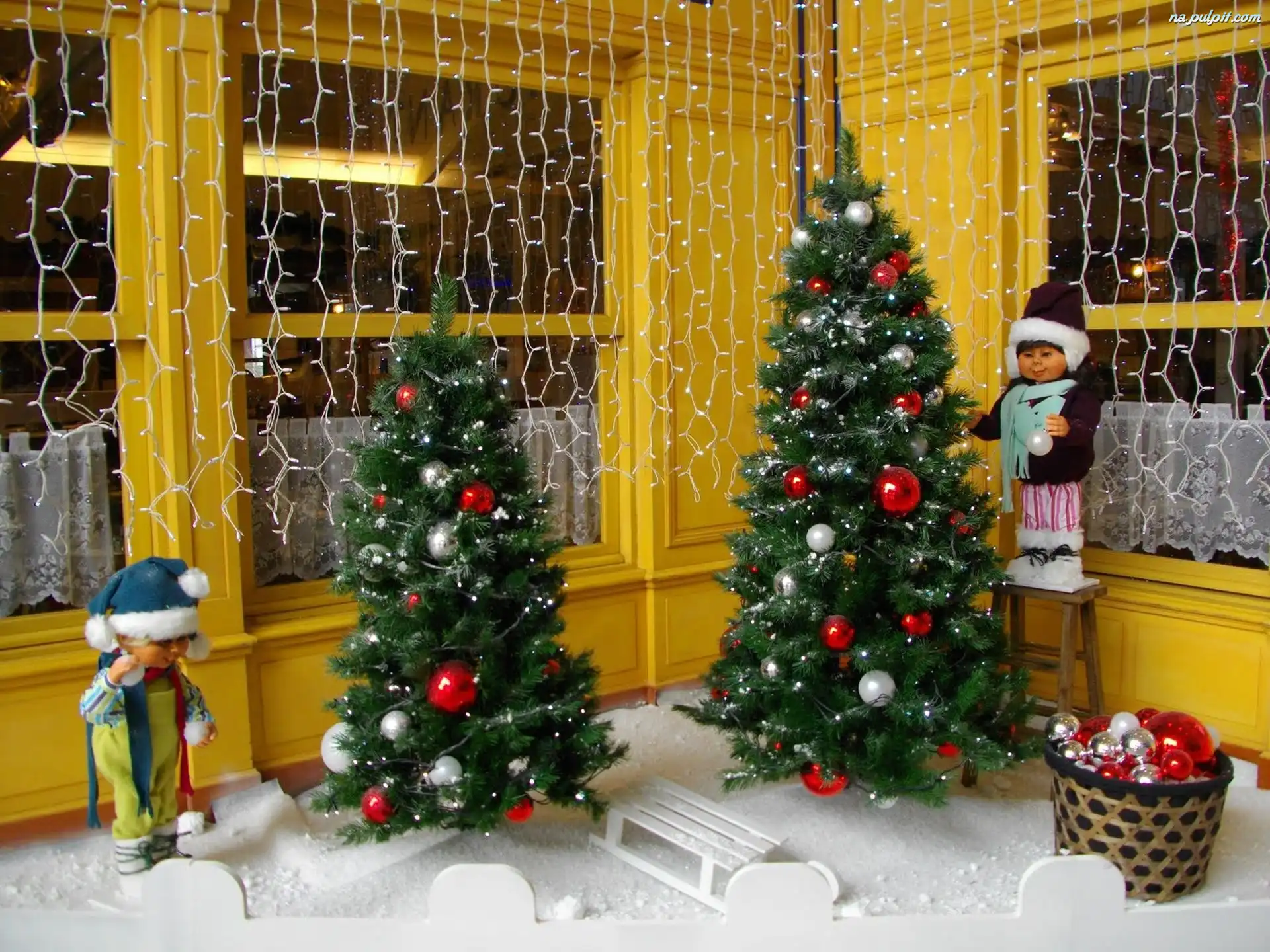 Światełka, Dekoracje, Choinki, Dwie , Święta Na Pulpit
