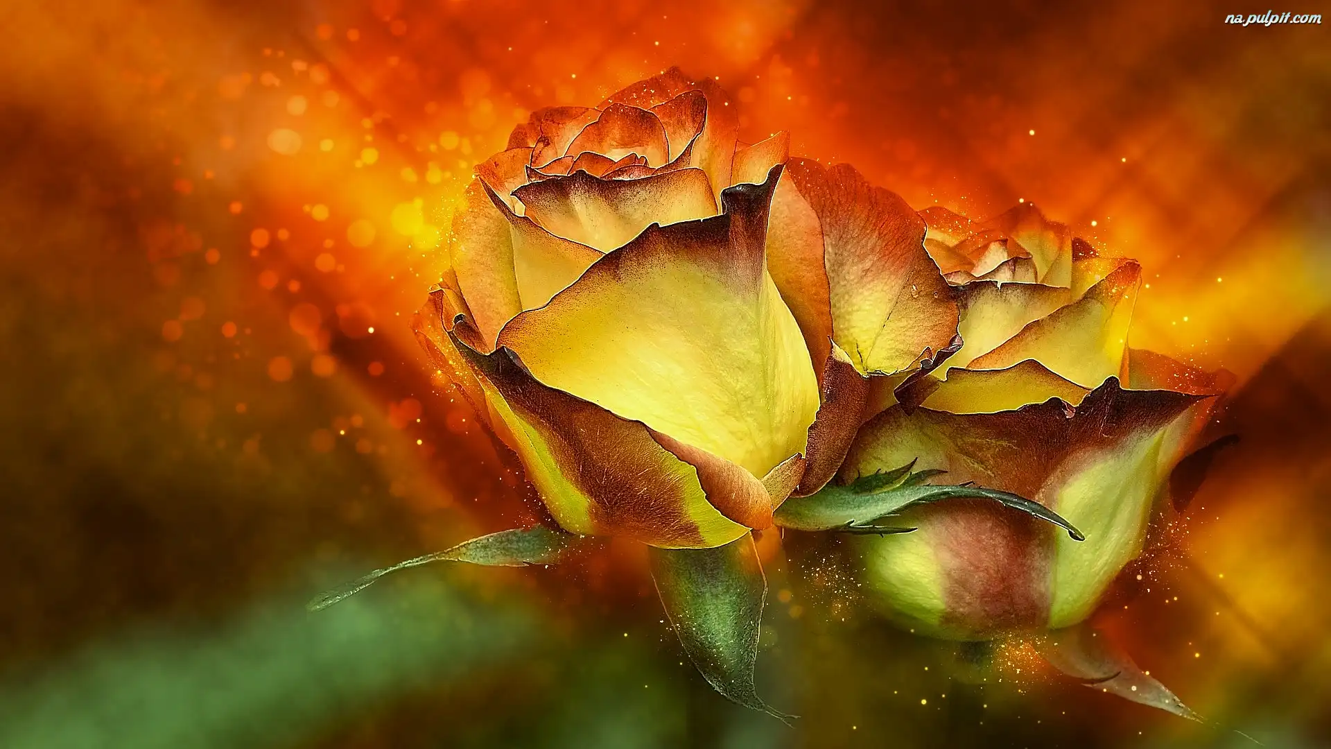 Grafika, Dwie, Róże Na Pulpit