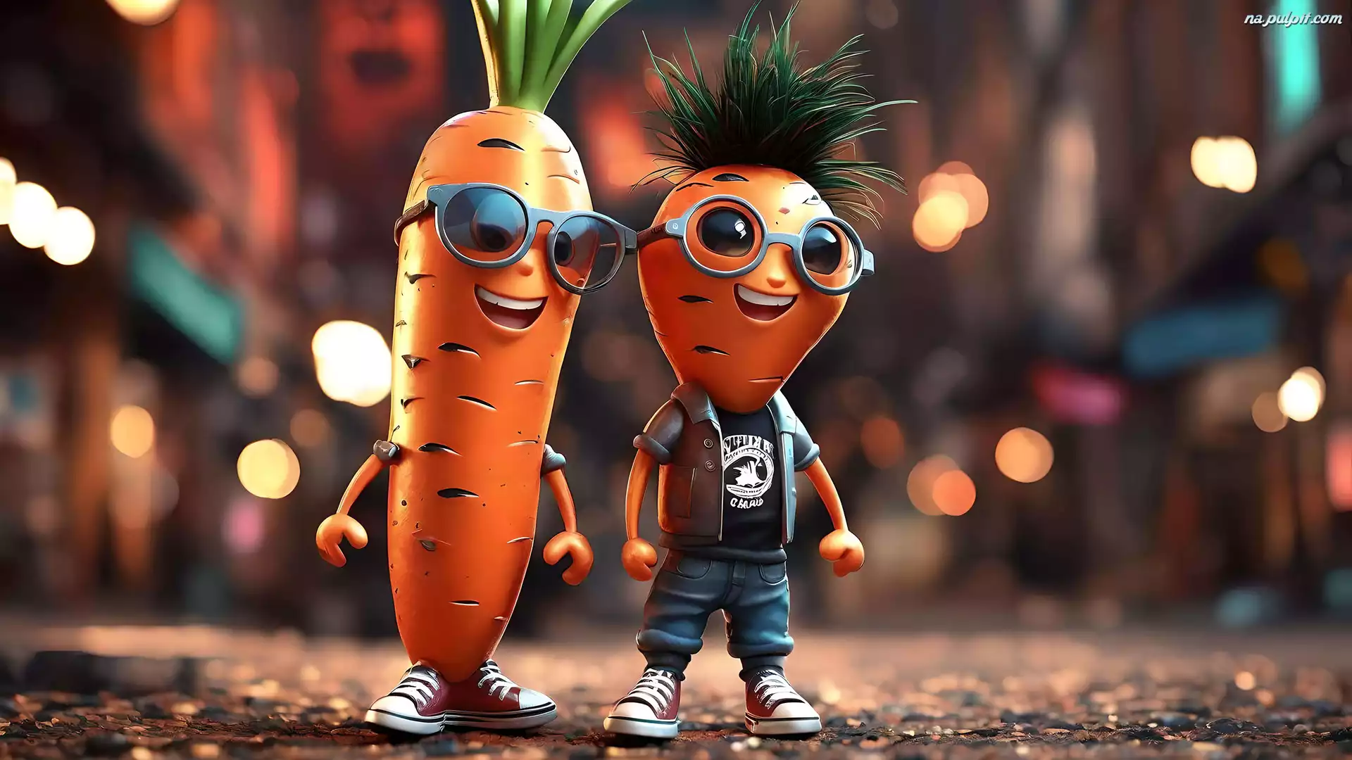 Tenisówki, Dwie, Marchewki, Okulary, Spodnie Na Pulpit