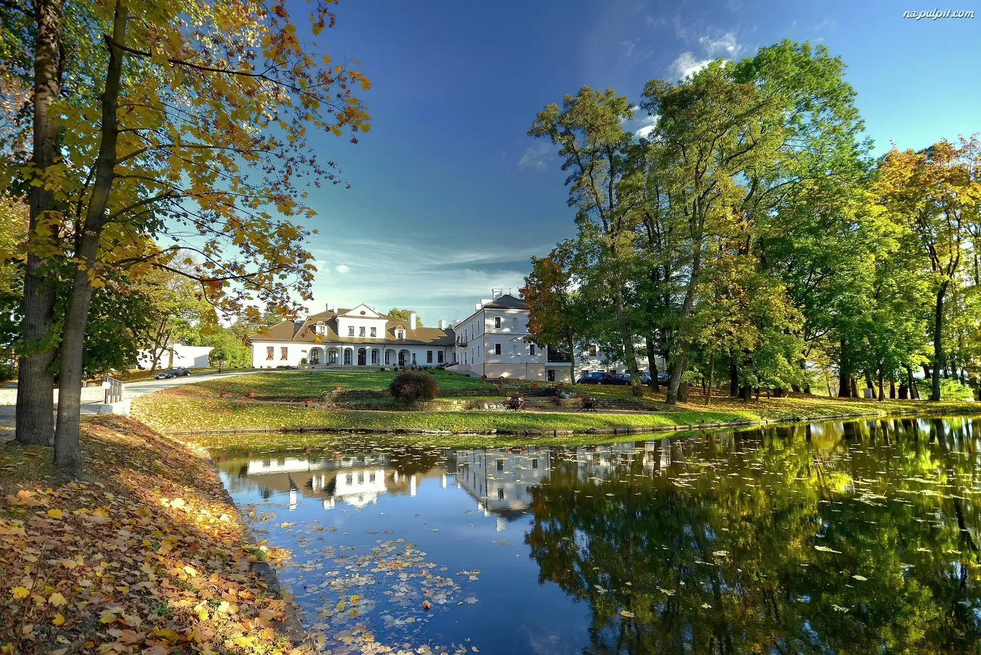 Ogród, Wilanów, Pałac Most, Anglia, Suffolk, Dom, Dworek, Halmingham Hall, Fosa Rogalin, Pałac, Raczyńskich Obraz, Dworek Muzeum Wollaton Hall, Anglia, Nottingham Powozy, Dworek, Robert Finale, Obraz, Drzewa Dworek, Zieleń, Staw, Park Buckingham, Anglia, Pałac Fontanna, Kolumny, Wejście, Pałacyk, Piętrowa Mury, Kamienne, Dworek, Pałac, Schody Dworku, Wnętrze, Hiszpańskiego Krzewy, Ferrari F430, Czarne, Dworek, Fontanna Francja, Dworek Jesień, Dworek, Odrestaurowany, Park