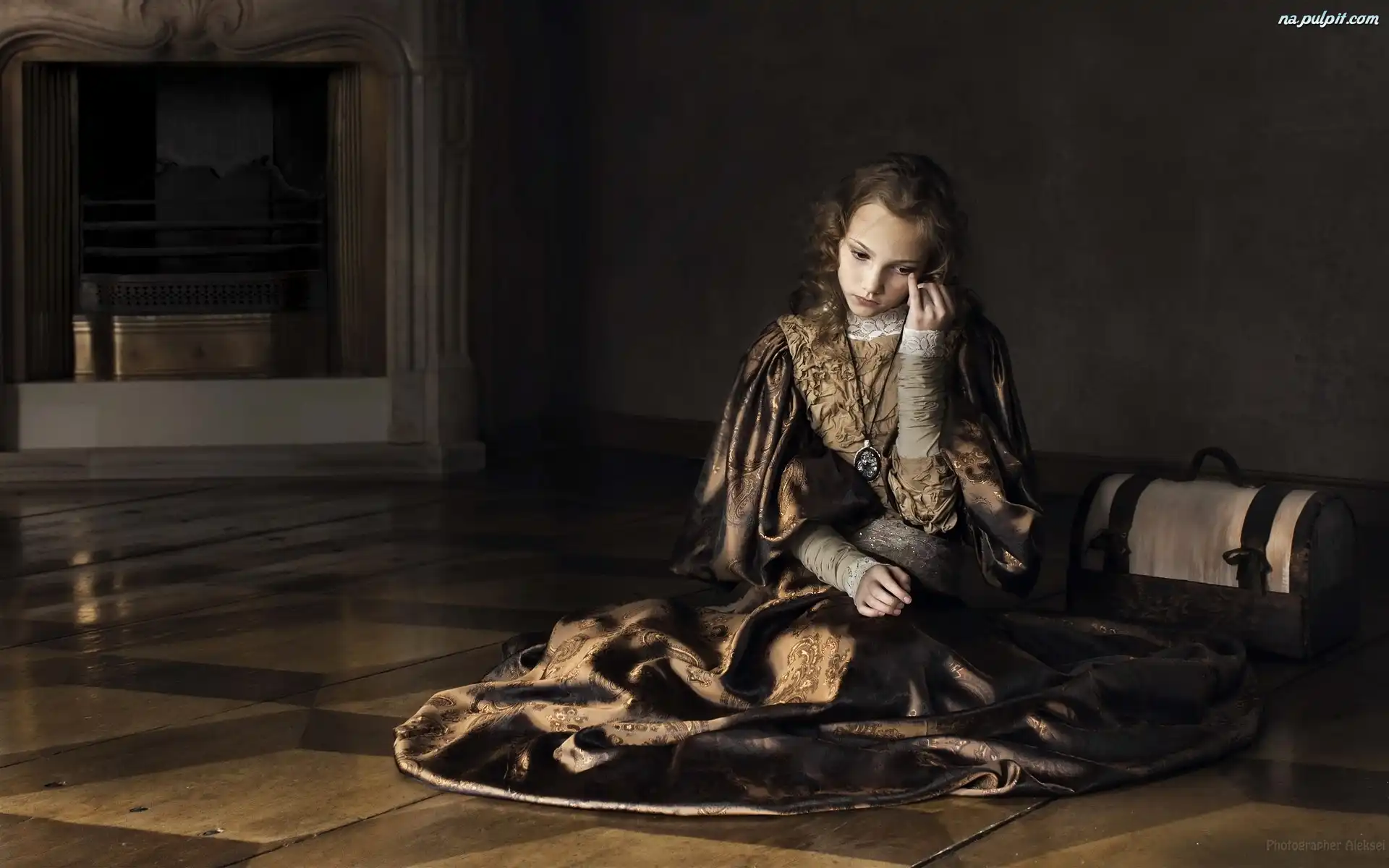 Dworski, Moda, Dziewczyna, Smutna, Strój