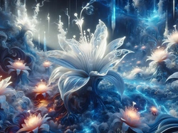 Kwiaty, Niebieskie, Grafika, Dym
