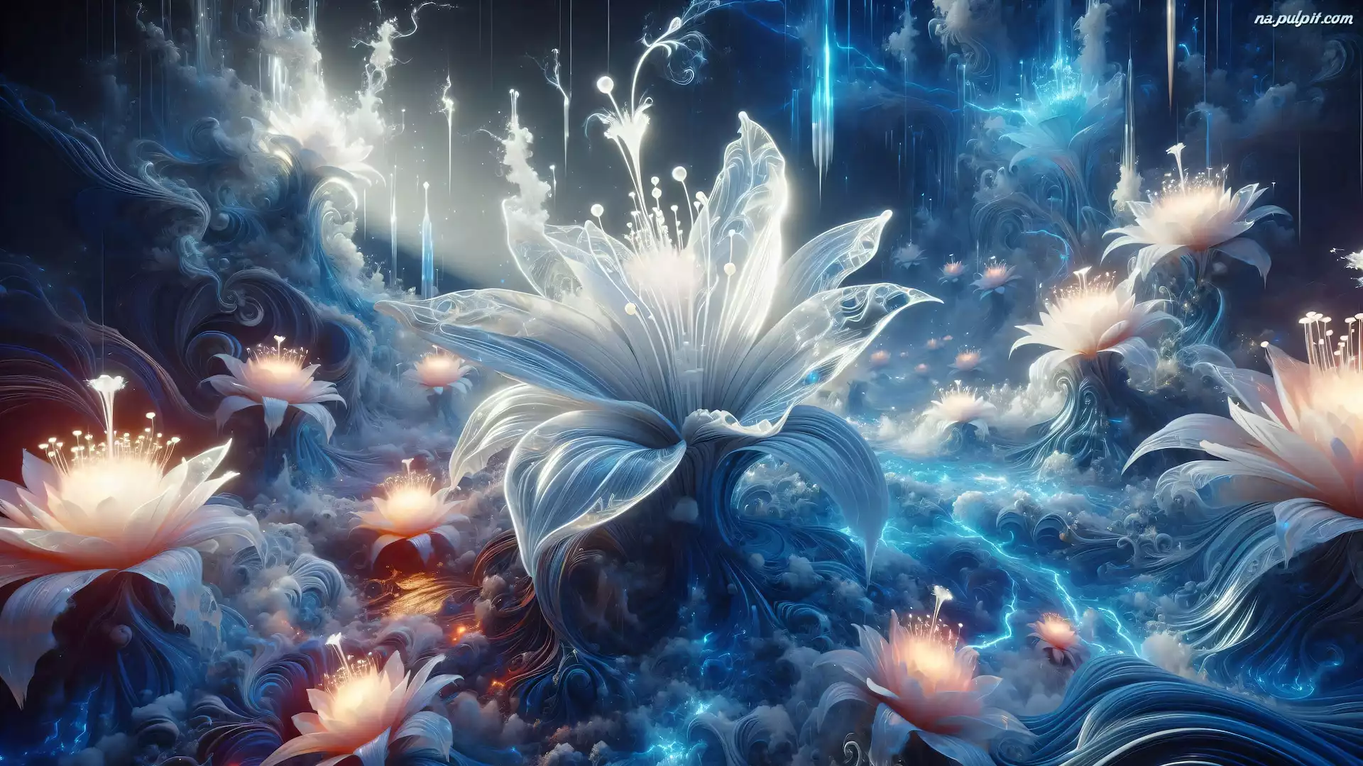 Kwiaty, Niebieskie, Grafika, Dym Na Pulpit