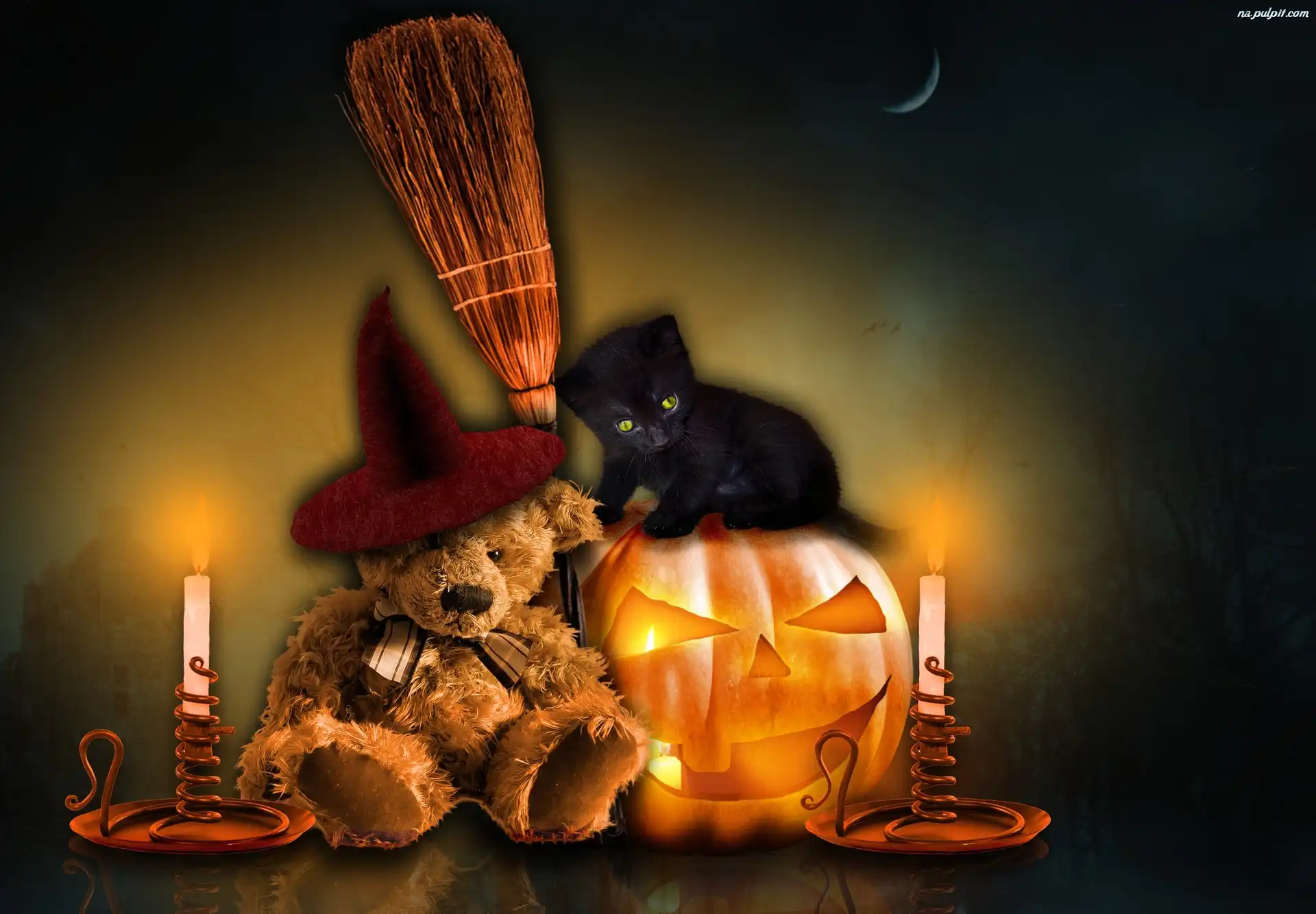 Dynia, MiÅ›, Kot, Halloween, Åšwiece Na Pulpit