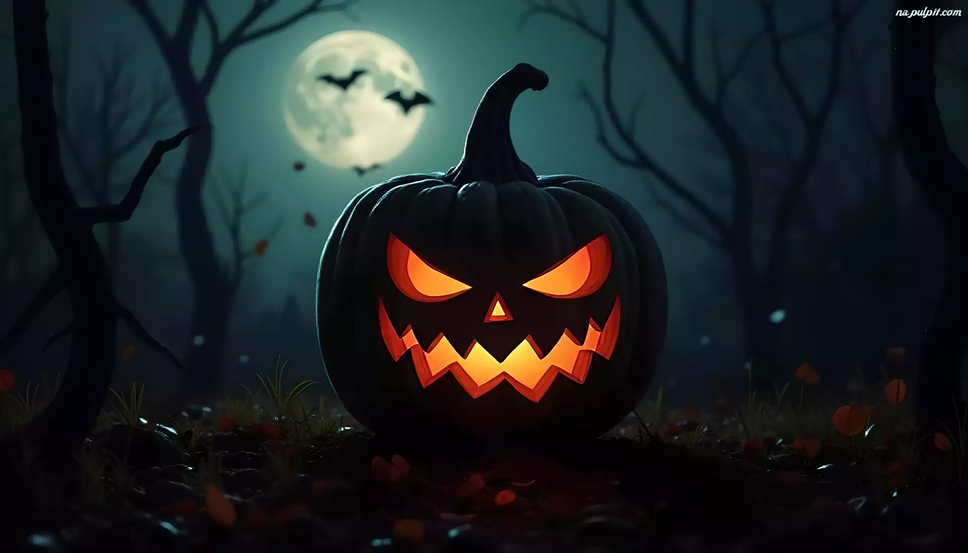 Halloween, Dynia, Księżyc, Grafika, Drzewa Na Pulpit