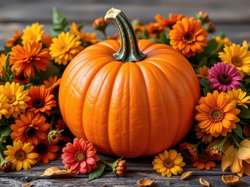 Pomarańczowe, Dynia, Kwiaty, AI, Żółte Na Pulpit