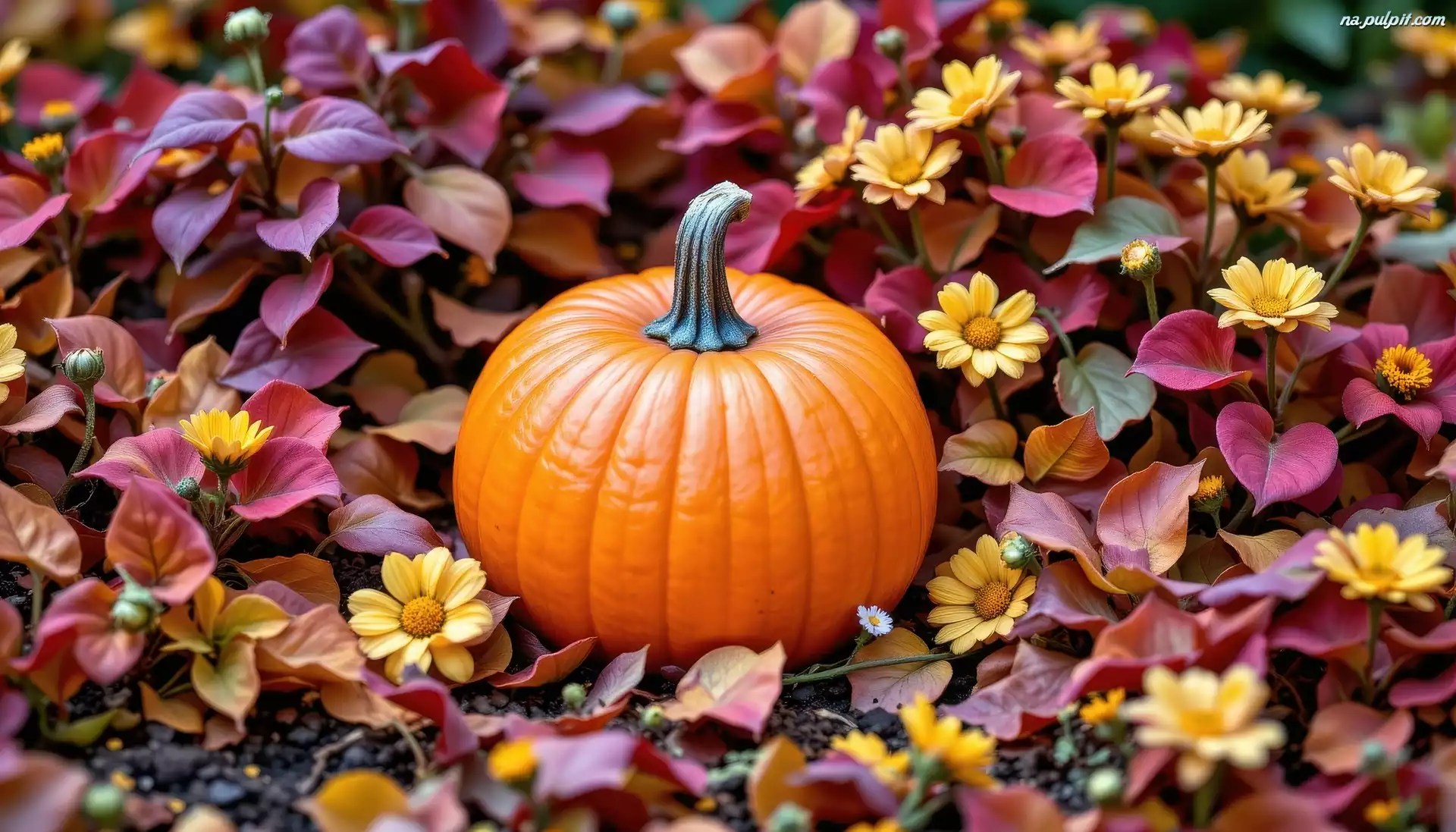 Kwiaty, Dynia, Liście, AI, Jesienne Na Pulpit