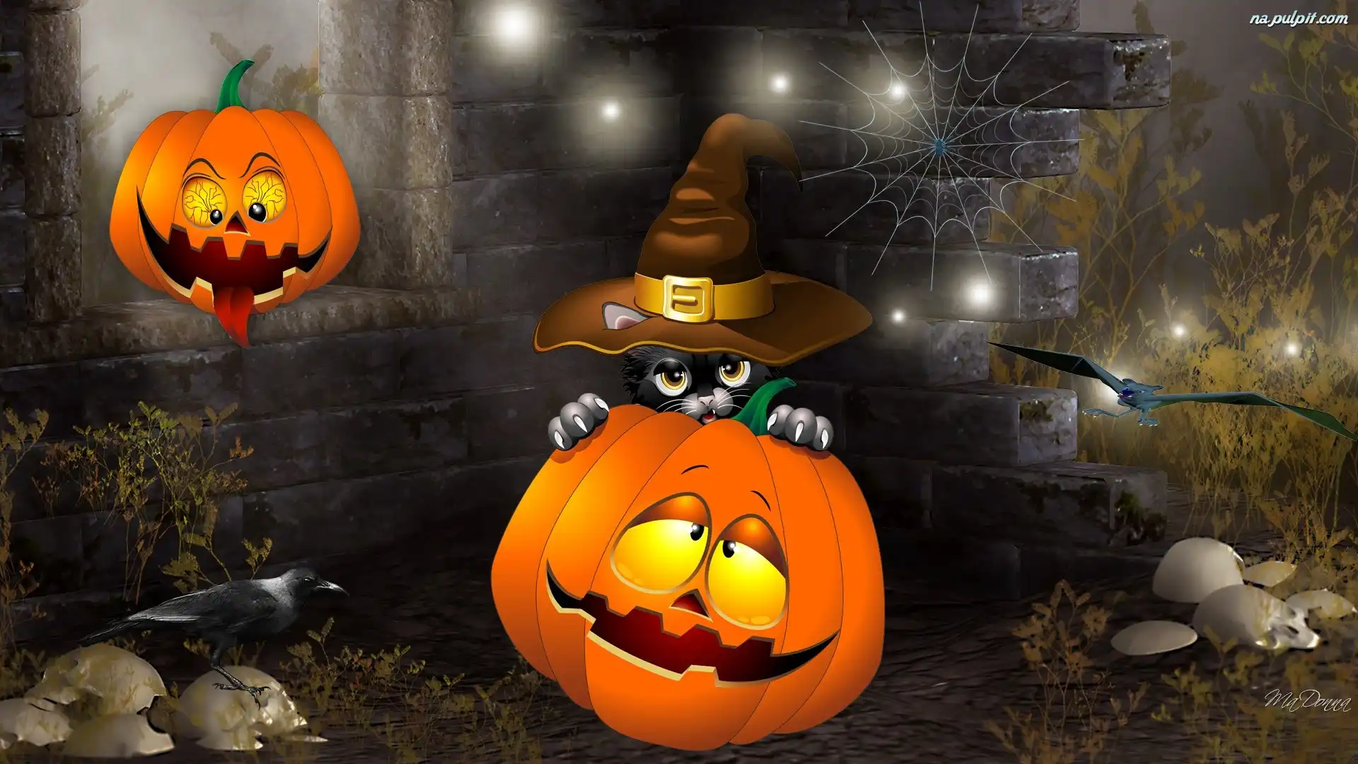 Dynia, Jesień, Liście duch, Halloween, dynia Nietoperz, Las, Ciemność Ławka, Dwa, Kotki Oczy, Niebieskie, Kot Halloween, Trick of Treat Trawa, Dynia, Liście Dynie, Oświetlenie, Płot, Domek, Postać Sen, Słodkie, Dwa, Kocięta Duża, Dynia Kompozycja, Gerberów, Bukiet, Dynia Kiciuś, Pyszczek Naczynia, Orzechy, Dynia, Stare Halloween, Kosz, Dynie, Kukły
