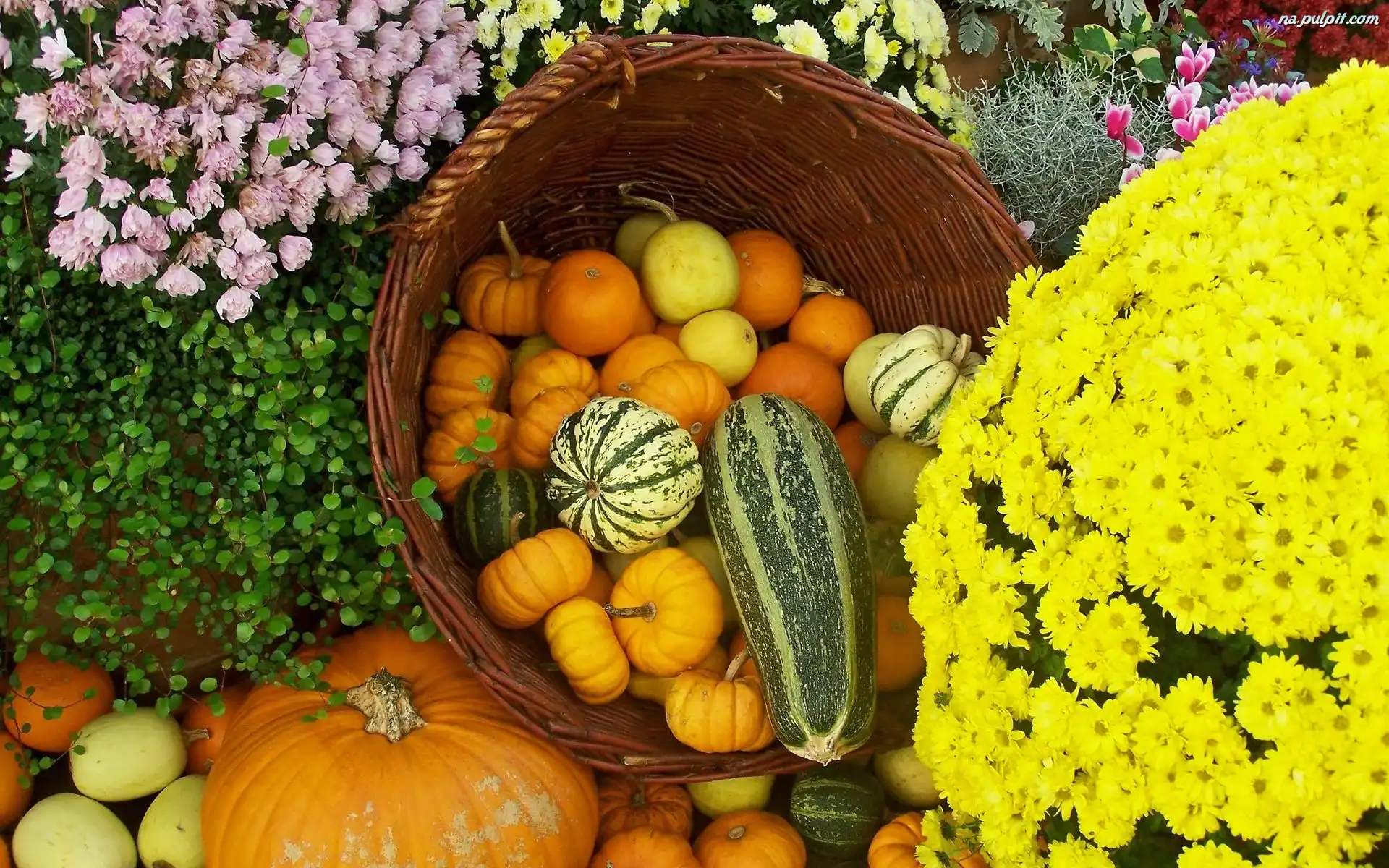 Dynie, Kwiaty, Jesienne, Chryzantemy Na Pulpit