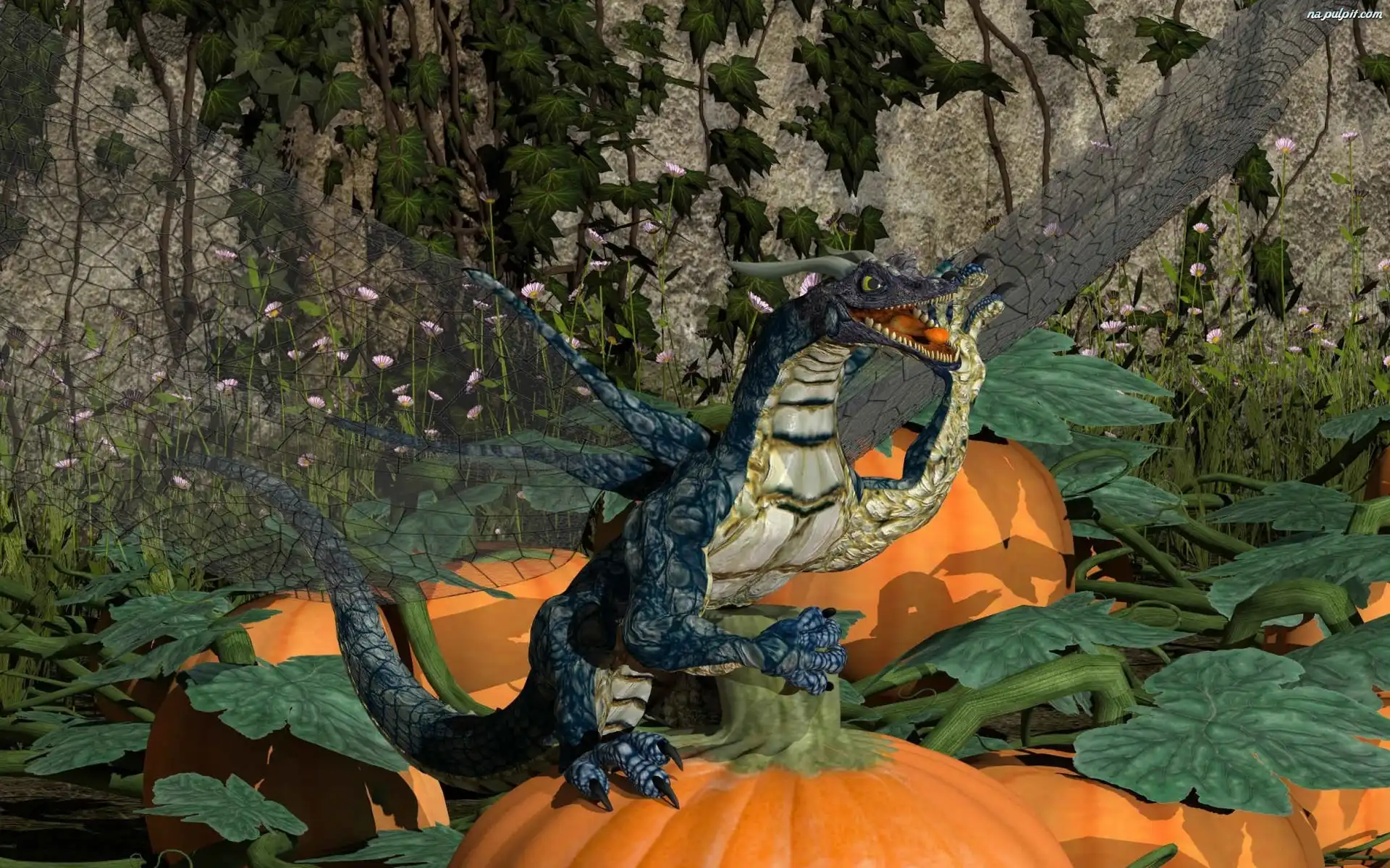 Drzewa, Smok, Zamek Słoneczniki, Dynie Dynie, Żółte, Pomarańczowe Dynie, Biały, Piesek Słonecznik, Jesieni, Owoce, Koszyk Gałki, Śmieszny, Ślimak Ryby, Kagaya, Grafika, Delfin Kolorowy, Łańcuch Grafika, Malowane, Dynie Kule, Promienie kule, Wektorowa, 3D, czerwone Dynie Dynie, Muszelki Halloween, Dynie, Schody