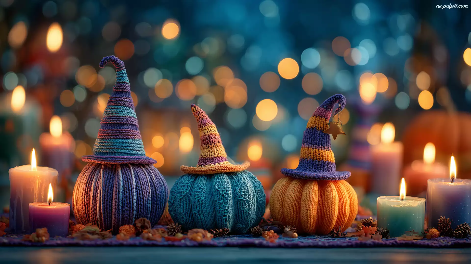 Bokeh, Dynie, Włóczka, Grafika, Świece Na Pulpit