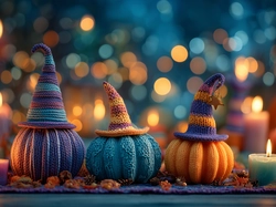 Bokeh, Dynie, Włóczka, Grafika, Świece