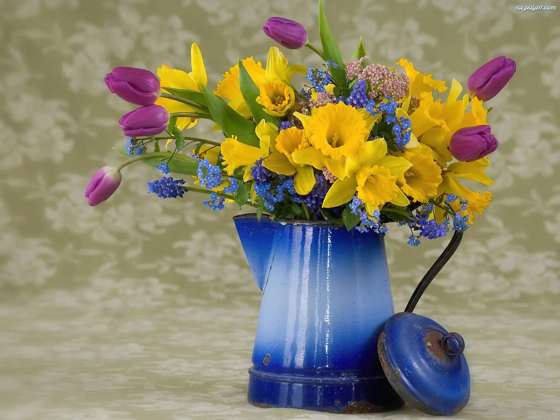 Dzbanek, Kwiatków, Wiosennych, Bukiet, Niebieski Na Pulpit