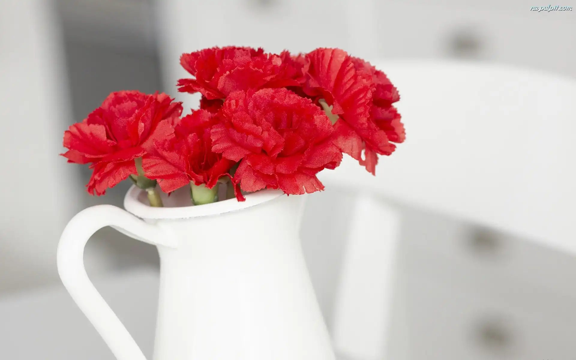 Goździki, Dzbanek, Czerwone Na Pulpit