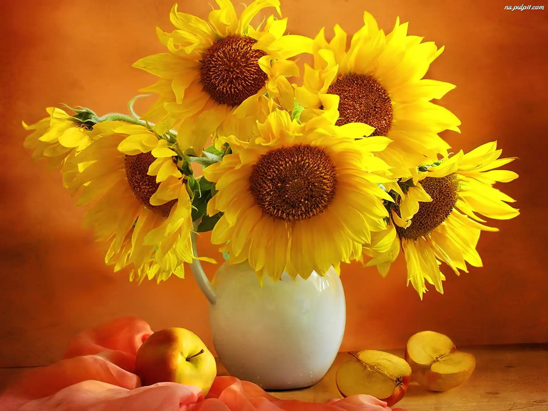Jabłka, Dzbanek, Słoneczniki Na Pulpit