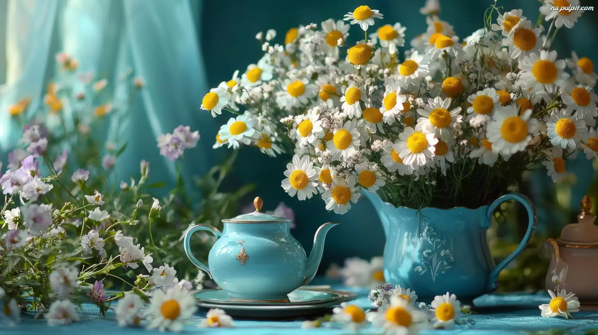 Imbryk, Kwiaty, Bukiet, Dzbanek, Rumianki, Kompozycja