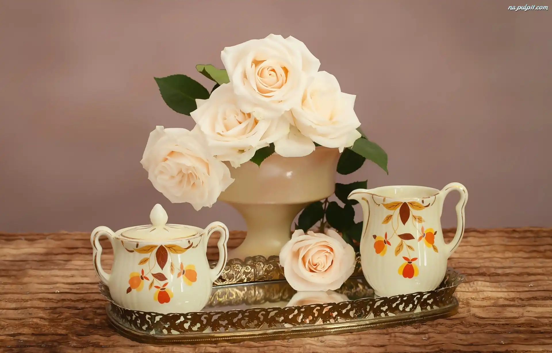 Dzbanek, Róże, Bukiet, Kompozycja, Flakon Na Pulpit