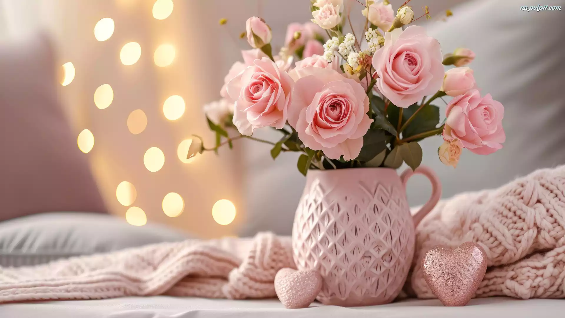 Szal, Kwiaty, Róże, Dzbanek, Bukiet, Serca Na Pulpit