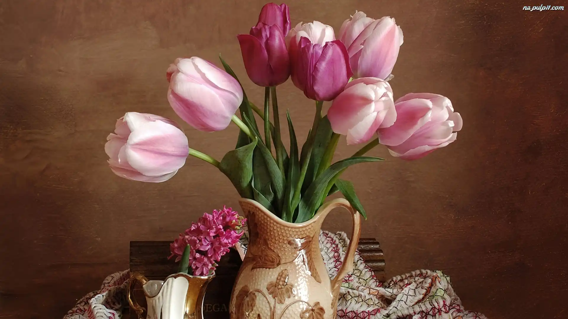 Dzbanki, Tulipany, Różowe, Gliniane Na Pulpit