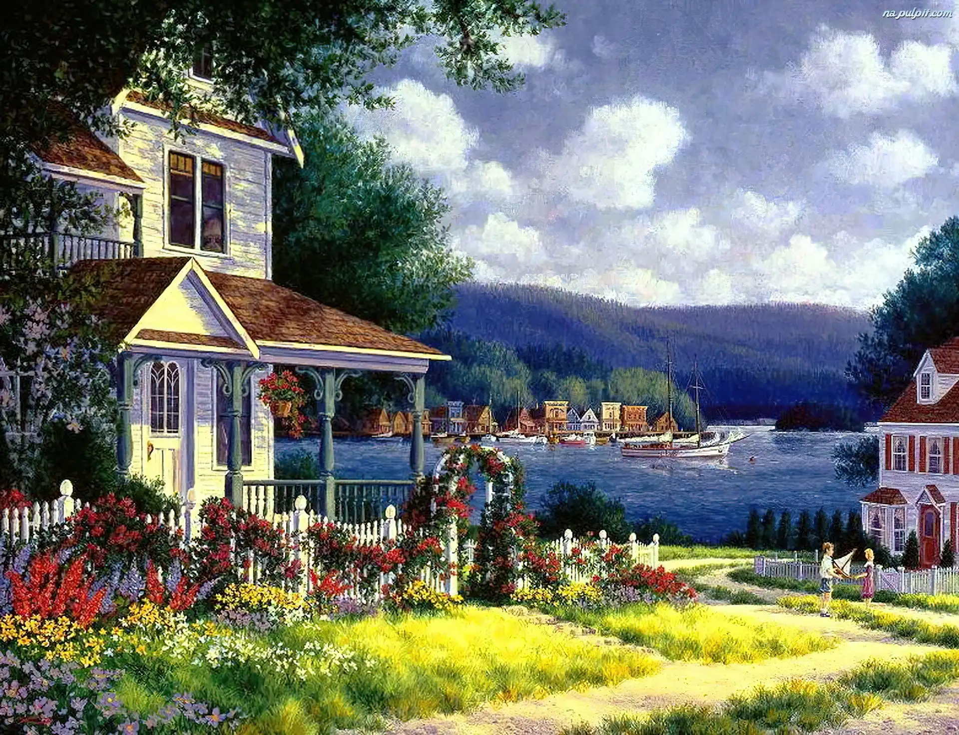 Dzieci, BawiÄ…ce, Jezioro, Domy, SiÄ™ Na Pulpit