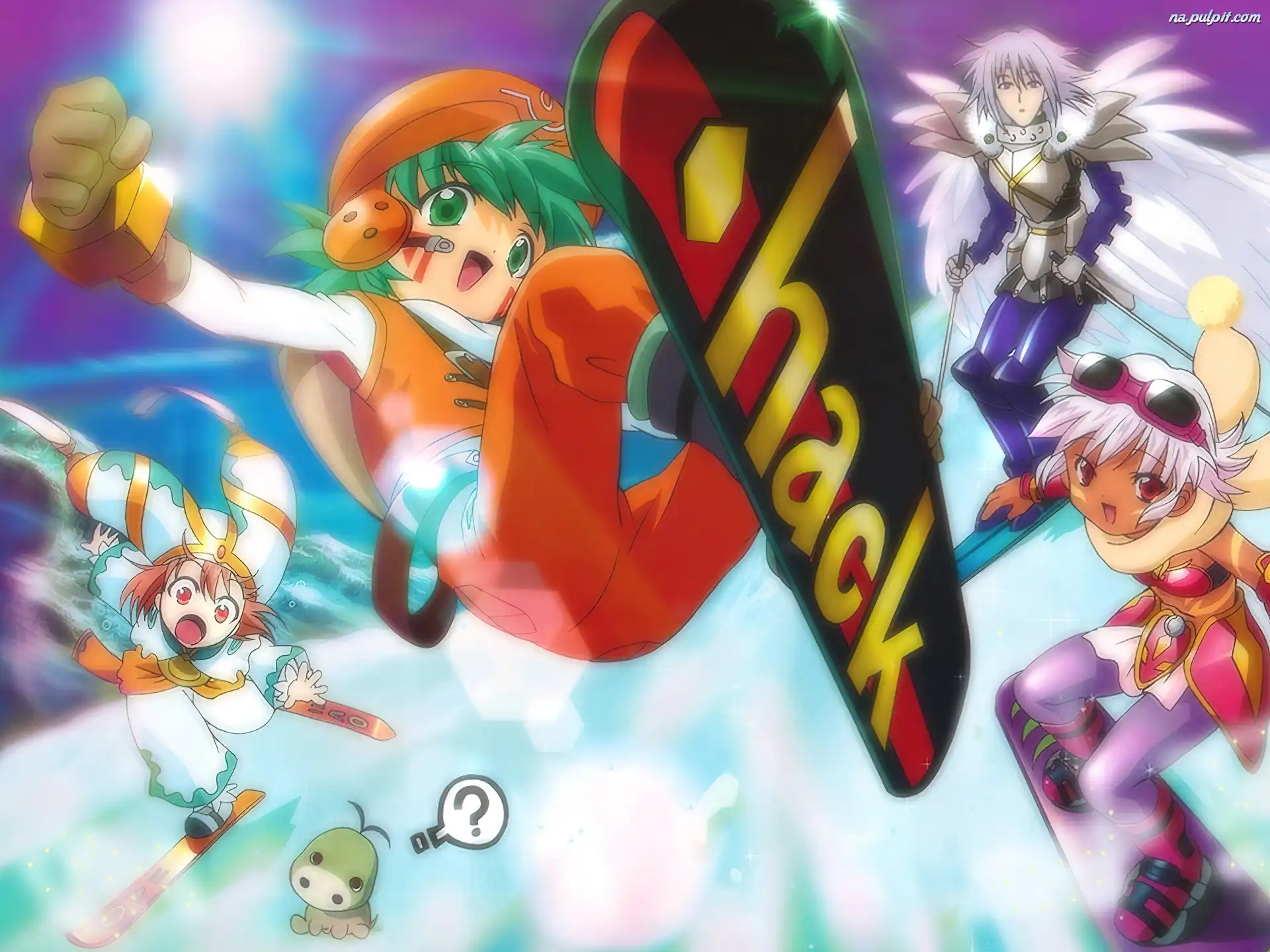 dzieci, deska, Dot Hack, skrzydła Na Pulpit