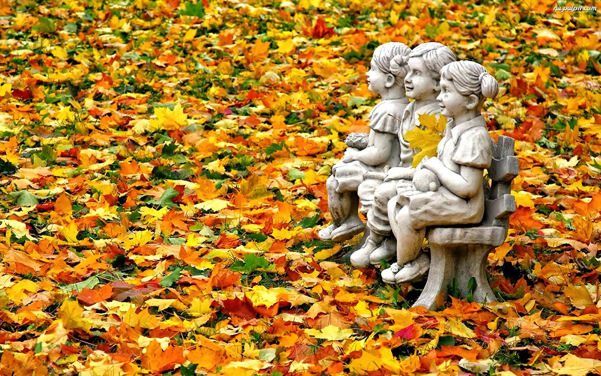Dzieci, Liście, Jesienne, Posążki Na Pulpit
