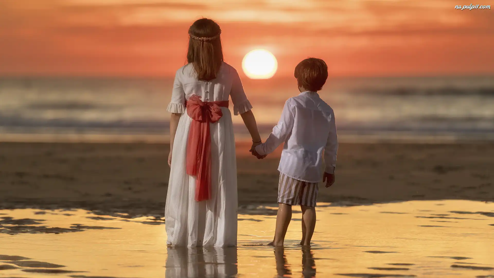 Dzieci, Zachód słońca, Morze Na Pulpit
