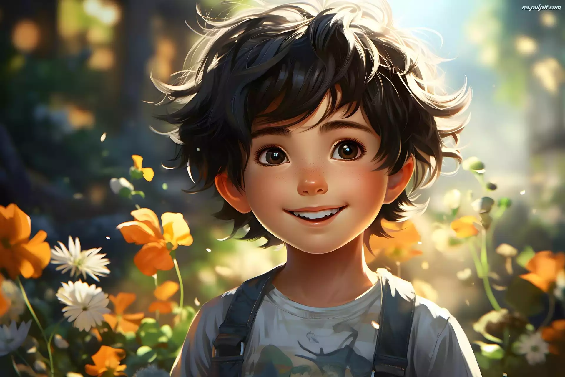 Kwiaty, Dziecko, Chłopiec, 2D, Twarz Na Pulpit