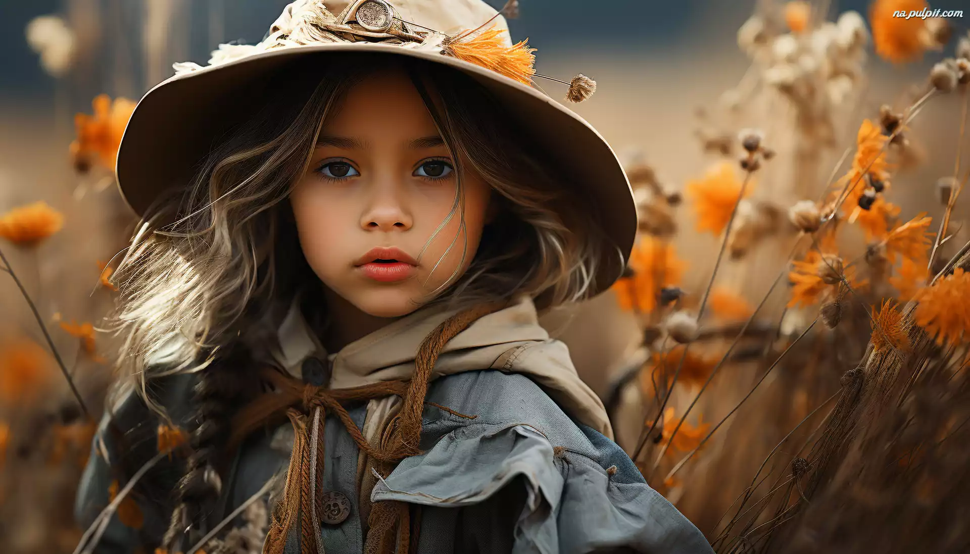 Kapelusz, Dziecko, Długowłosa, Kwiaty, Dziewczynka